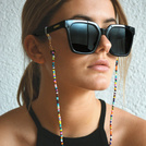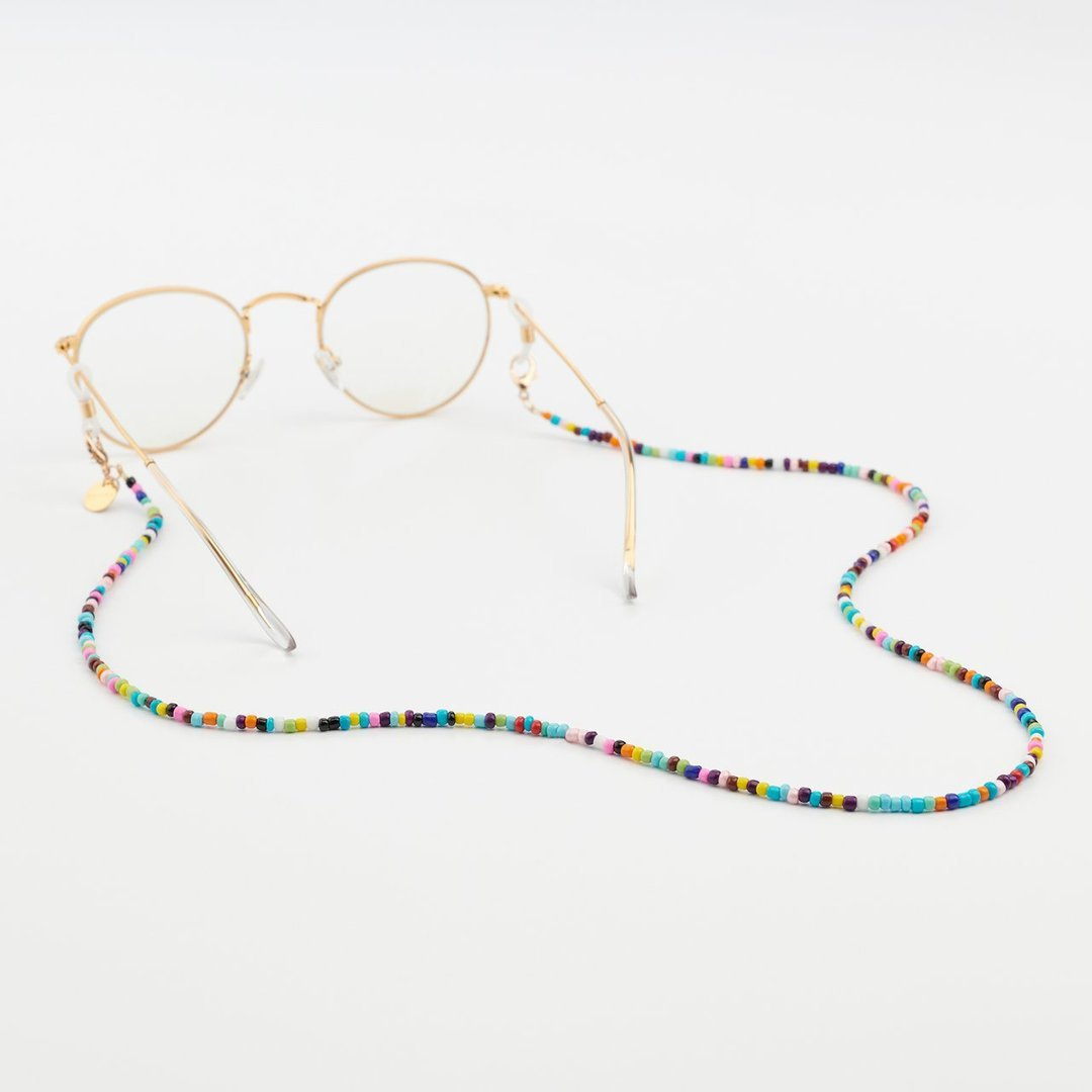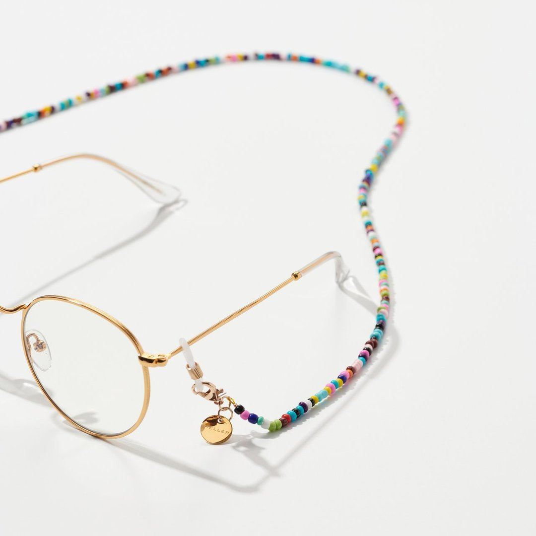 Łańcuszki Hirsi składają się z wielokolorowych zawieszek o ciepłych tonacjach, błękitach i zieleniach, tworząc idealny dodatek do uzupełnienia Twoich okularów przeciwsłonecznych lub ochronnych.